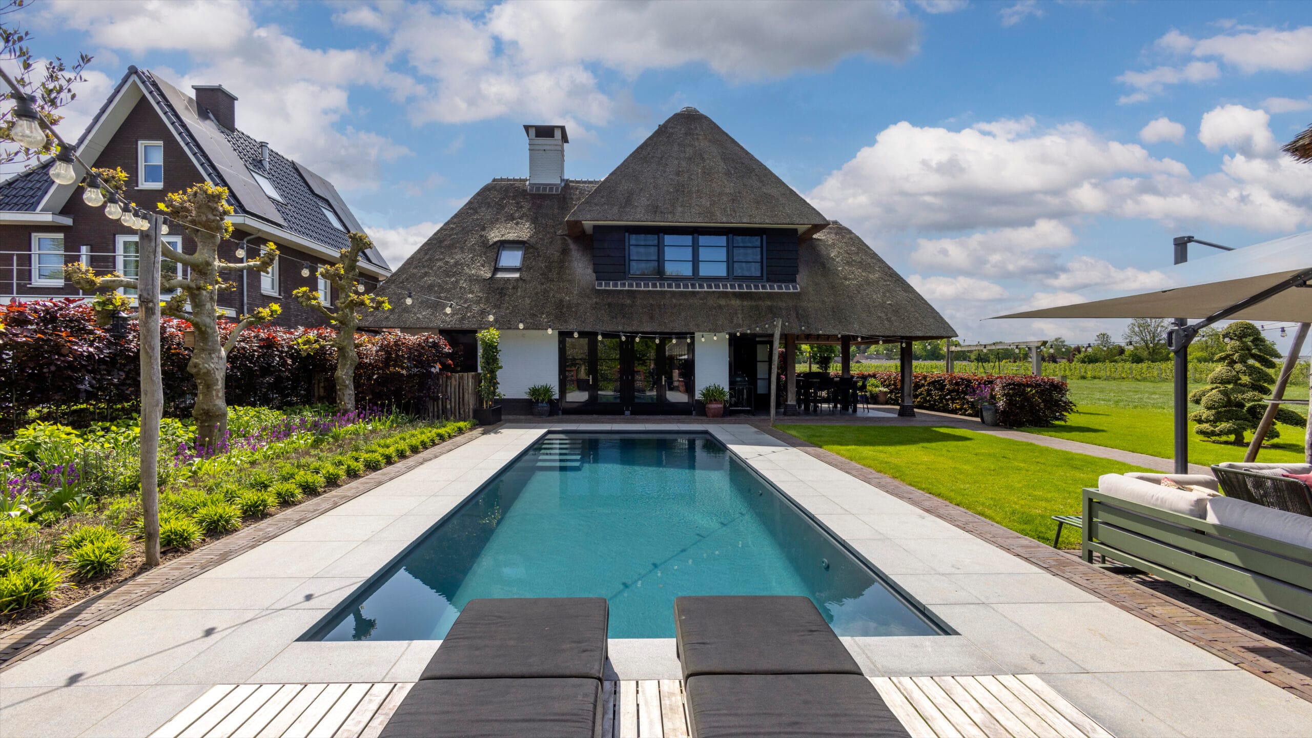 Dit zwembad geeft het ultieme luxe gevoel, de elegante kleur en het uitzicht vanuit huis en het terras zorgen voor optimaal genot!