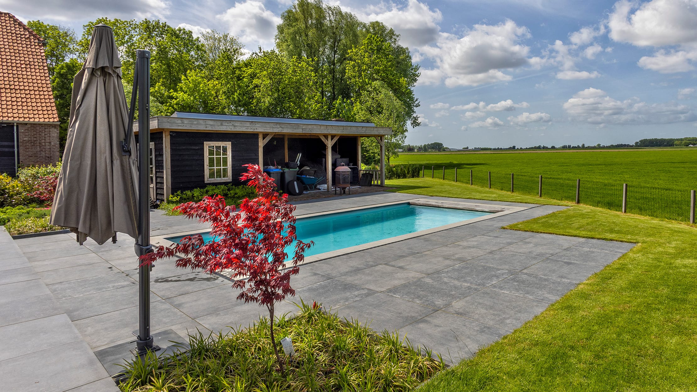 Dit mooie zwembad ligt in een tuin met een uitzicht op de wijde omgeving. De LPW Carré in de kleur ‘’Pearl Grey’’ biedt hier ultiem rust en zwemcomfort. De ingebouwde JetStream zorgt voor een stukje sport en ontspanning. De klant heeft hier gekozen voor een Covrex afdekking in de kleur ‘’Silex Grey’’. Ook is dit zwembad uitgerust met een full-inverter luchtwarmtepomp en automatische waterbehandeling.